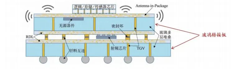 TGV以高品质硼硅玻璃、石英玻璃为基材,通过种子层溅射、电镀填充、化学机械平坦化、RDL再布线, bump工艺引出实现3D互联,被视为下一代先进封装集成的关键技术。