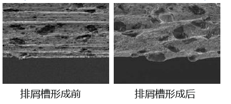 说到排屑槽就不得不讲自锐性。金刚石划片刀与我们常见的菜刀、美工刀不一样,后者是越用越钝,前者是越用越锋利,这是因为金刚石刀有独特的自锐性。