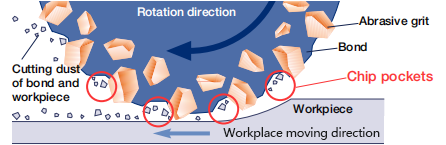 2.结合剂磨损后,原本钝化的旧磨粒会自然脱落,刃口立刻露出全新的锋利磨粒,形成新的切削面;